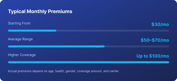 Premiums for final expense insurance remain level throughout the life of the policy. The amount you pay when you purchase coverage is the same amount you will pay for as long as you own the policy.